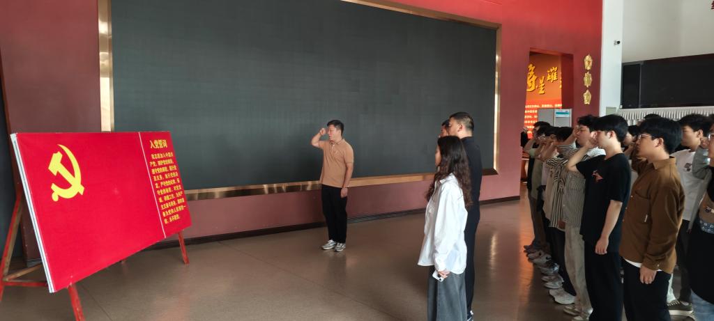 鄂豫皖革命纪念馆将帅馆大厅,在肃穆庄严的氛围中,党总支书记徐远东带领辅导员和各学生支部书记与全体毕业生党员一道重温入党誓词。铿锵誓言彰显新时代青年党员的忠诚担当,让党员们重温入党初心,深刻感悟革命先辈的崇高精神与使命担当。