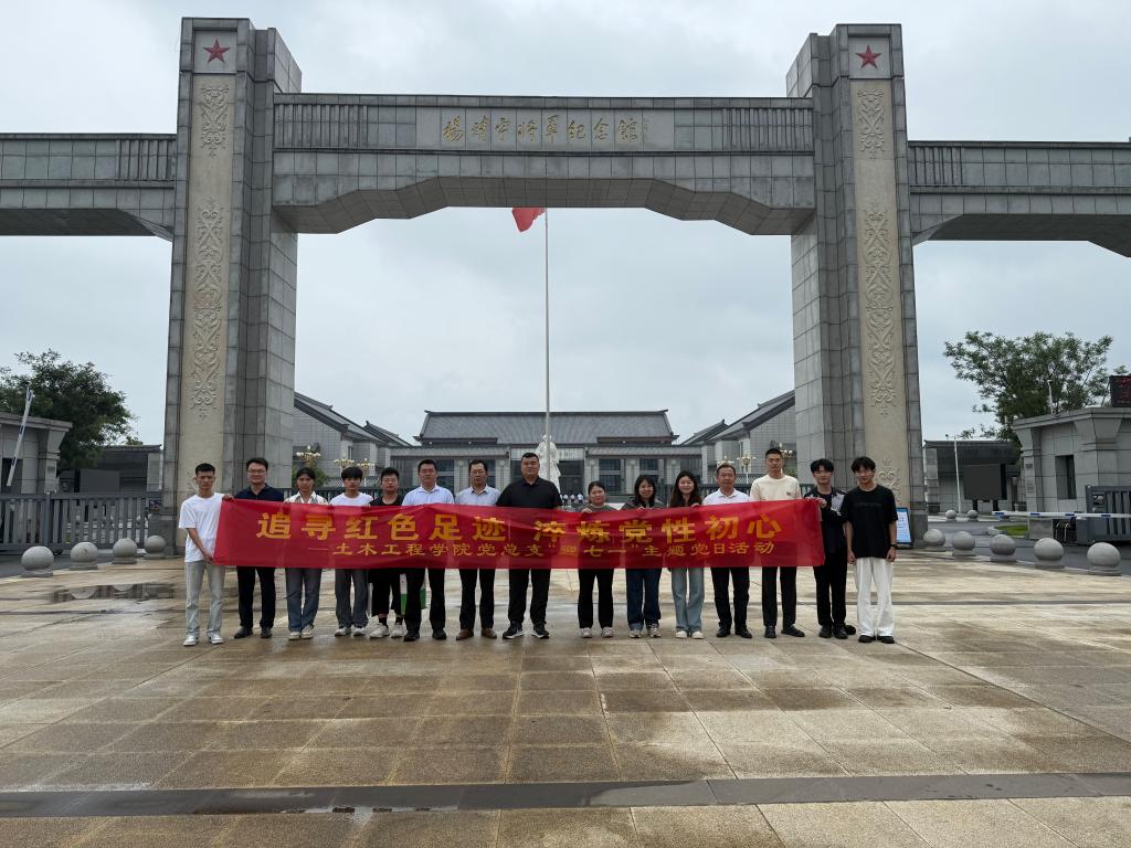 为庆祝中国共产党成立104周年,在“七一”建党节来临之际,6月26日,土木工程学院党总支书记徐远东、教学副院长杨子泉、总支各委员、各支部书记代表、学生党员代表前往杨靖宇将军纪念馆和确山竹沟革命纪念馆,开展了“追寻红色足迹 淬炼党性初心”主题党日活动,接受红色洗礼,传承革命精神。
