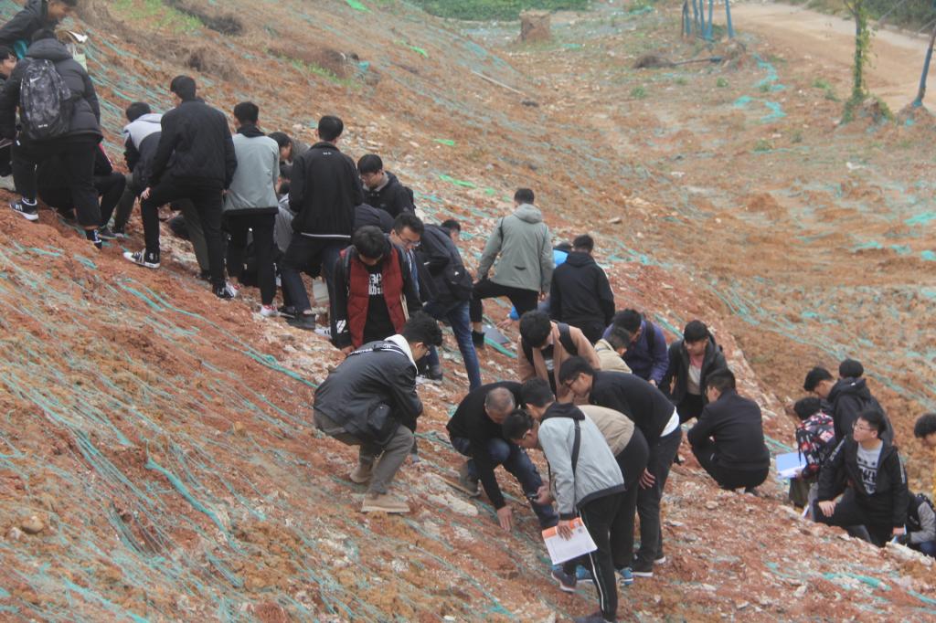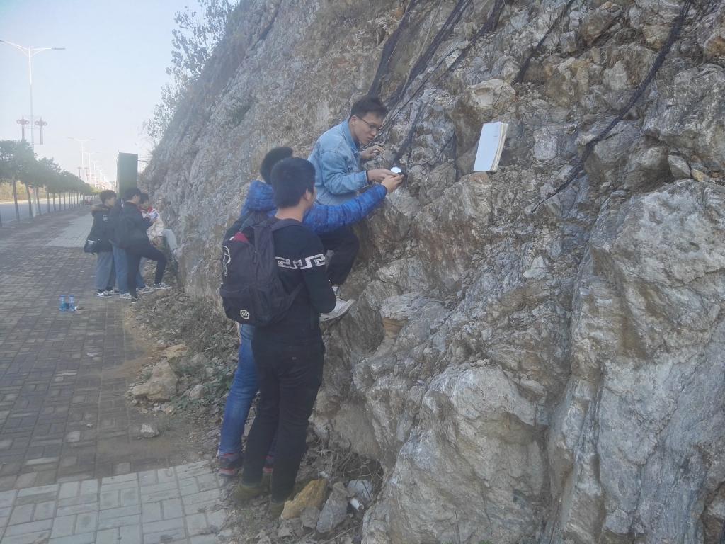土木工程学院地下工程及岩土教研室于2019年11月至2019年12月对18土木本、19土木专升本开展了普通地质及工程地质现场教学活动。实习地点主要在信阳学院校园地质实习基地、土木工程学院样岩土样本实验室、新七大道信阳学院路段、山羊新区新十一大道新二十二大街一带。主要实习内容:(1)地形地貌认识,了解实习地区地形地貌特征类型;(2)地层岩性认识,掌握实习地区地层的年代、成因、岩性、岩相及其岩性描述方法,工程意义;(3)地质构造认识和分析,掌握野外地质构造的识别方法、工程意义;(4)水文地质条件的调查与分析,了解水文地质的野外工作方法,地下水的类型以及对工程产出的影响;(5)物理地质现象的认识与分析,岩石岩体分化、滑坡、崩塌、泥石流的产生和防治的一般方法。