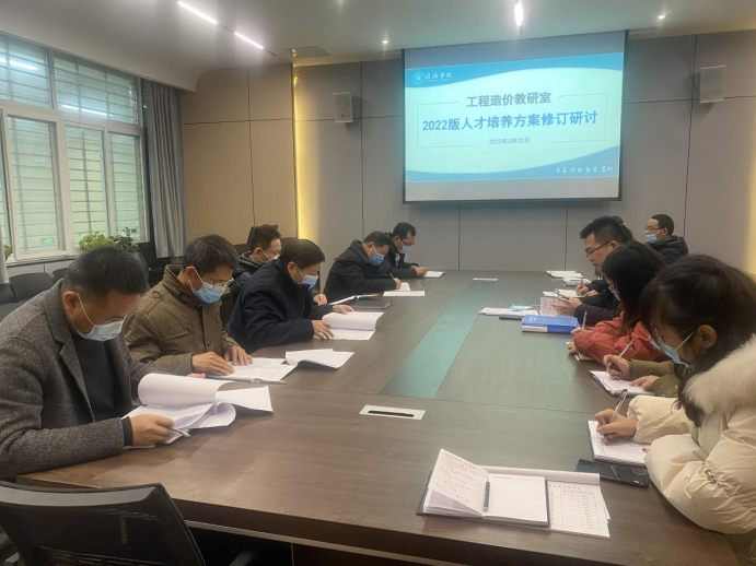 为保障工程造价专业教学工作的正常运转和人才培养质量的提高,2022年3月22日,土木工程学院工程造价教研室在理工楼112会议室召开2022版人才培养方案修订专题研讨会。信阳学院教学督导吴锐教授,土木工程学院名誉院长,教学副院长杨子泉,督导王国际教授,邱荣茂教授、朱洪涛副教授、余沛副教授及工程造价教研室全体教师参加了会议,会议由教研室主任方超主持。