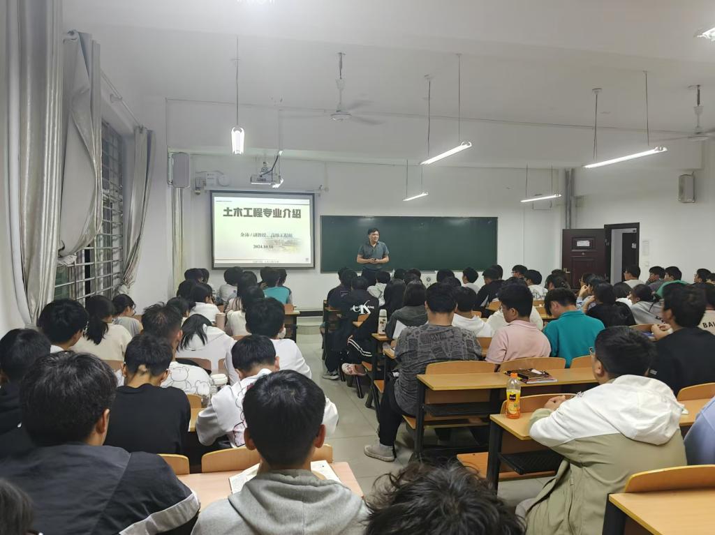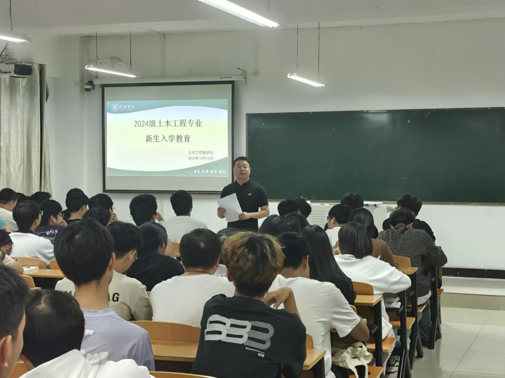 为了进一步加深土木工程专业新生对学院的了解和对所学专业知识和行业发展方向的认识。同时,学院高度重视新生的入学教育,精心组织,周密部署,10月16日晚,土木工程学院土木工程教研室在浉河校区理工楼402教室开展了土木工程专业新生入学教育暨师生见面活动,学院团总支书记徐飞、土木工程教研室主任付善春、教研室各专业课教师、辅导员胡筱婕及2024级土木工程专业全体新生参加了本次活动。