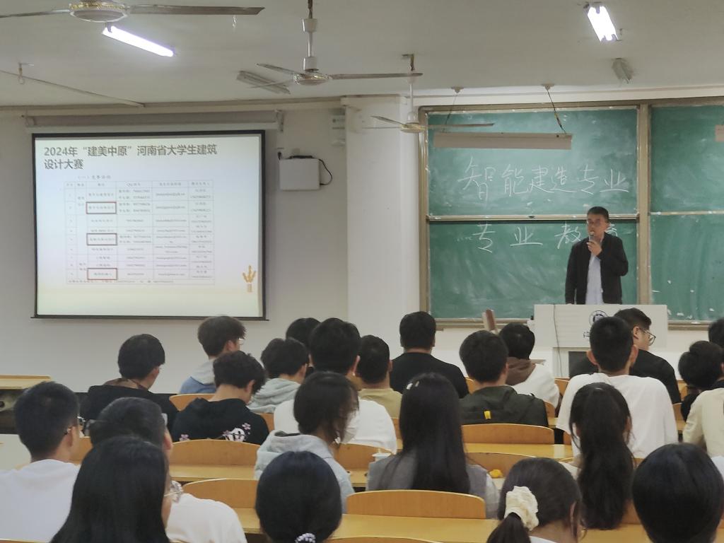 在展示学院“高教杯”大学生先进成图技术与产品信息建模创新大赛、“建美中原”河南省大学生建筑设计大赛等赛事中取得的优异成绩后,黄小林老师详细介绍了本专业学生可以参与的各类比赛,并邀请了参赛经验丰富、成绩突出的2022级学生司亚升分享了他的参赛经历,讲解了参与比赛的重要性以及如何备赛。