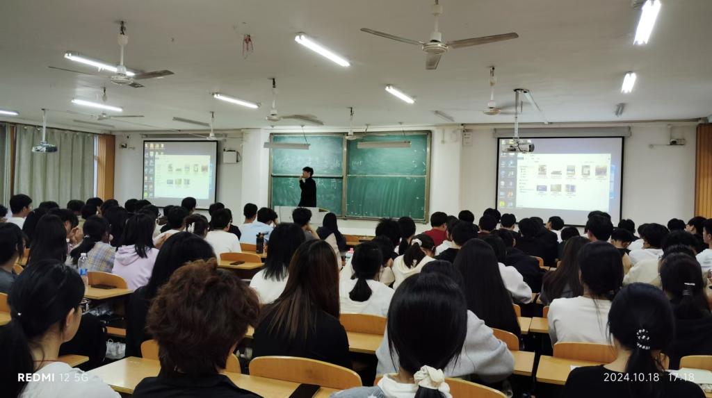 黄小林老师首先对2024级新同学的加入表示了热烈的欢迎,并介绍了到场的专业课教师。他详细介绍了学院近年来取得的成就,并展示了智能建造领域的最新成果,使同学们对专业前沿有了更深入的认识。黄老师还从专业背景、课程设置、专业发展、就业前景等多个角度,对智能建造专业进行了全面而深入的介绍,并结合国家政策,对行业人才需求进行了全面的解读和展望。