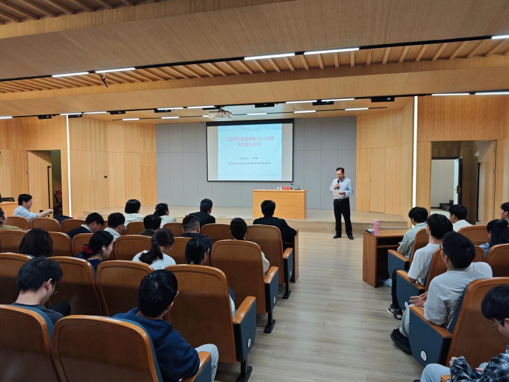 为深化学科内涵建设,拓宽师生学术视野,推动新型绿色建材技术交流与成果转化,4月10日,智能建造学院特邀湖北工业大学苏骏教授在浉河校区图书馆101报告厅作题为“工程用水泥基材料(ECC)的基本性能及应用”的专题学术报告。智能建造学院200余名师生共同聆听了本次报告。报告由学院教学副院长杨子泉主持。