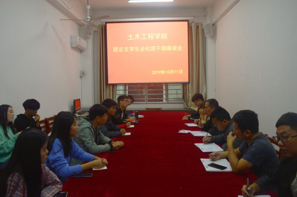 10月11日中午,土木工程学院组织召开团总支学生会社团干部座谈会,院党总支书记潘卫国、学工干事徐超、团总支书记吴琼茹、社团指导教师王冬冬及学生会分管主席、各社团负责人参会。会议由徐超老师主持。
