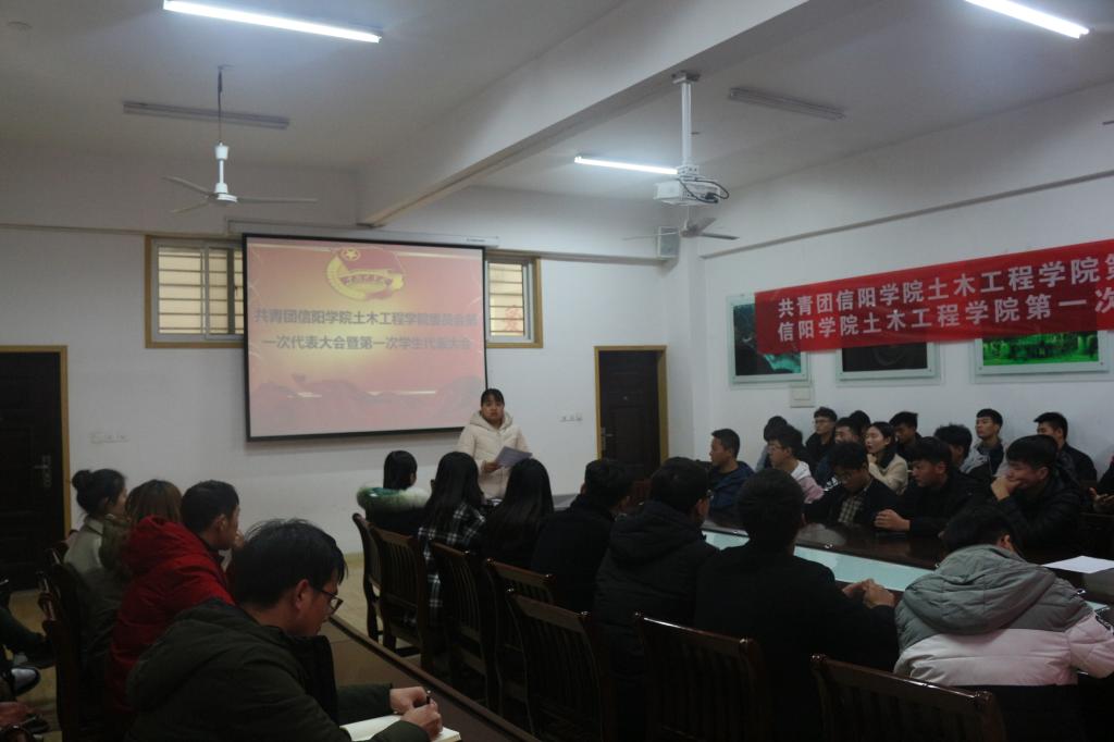 12月11日,共青团信阳学院土木工程学院委员会第一次代表大会暨第一次学生代表大会在理工楼201会议室顺利召开。本次会议由我院团总支书记吴琼茹老师主持,我院各年级学生干部、团员代表以及学生代表共50名参加了本次会议。