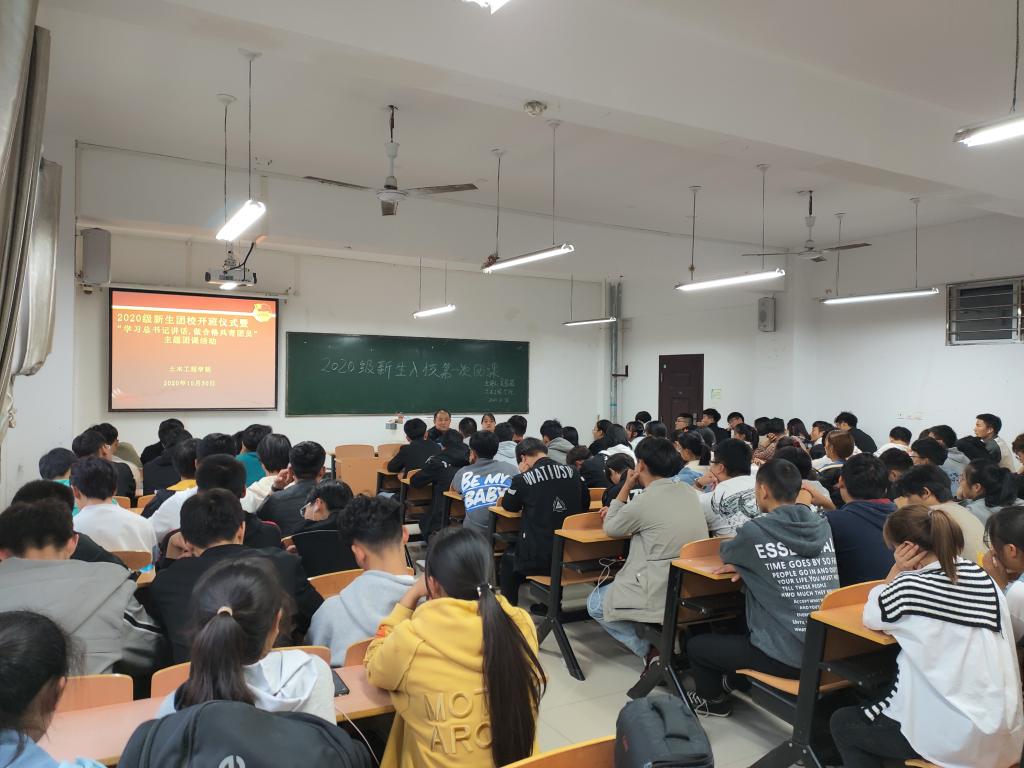 为深刻领会习近平总书记对广大青年的寄语精神,全力落实“全团抓思想政治引领”的工作部署,增强团员意识,不断提升我院广大团员青年的思想政治理论水平和政治素养, 10月30日下午,土木工程学院团总支在理工楼402教室开展了2020级新生团校开班仪式暨“学习总书记讲话,做合格共青团员”主题团课活动。该院党总支书记潘卫国、团总支书记吴琼茹和新生共青团员参加了本次活动。