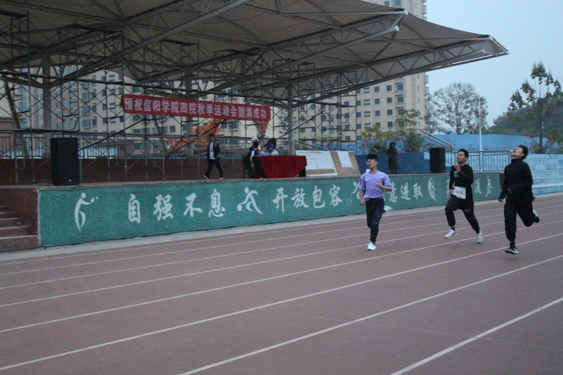 经过一天的精彩比赛,信阳学院四院秋季运动会各项赛事圆满结束,在本次运动会中,同学们本着“友谊第一,比赛第二”的理念参加了比赛。本次运动会的举行不但促进了四院之间的友好交往,而且锻炼了同学们的体魄,培养了学生们坚强的意志品质。