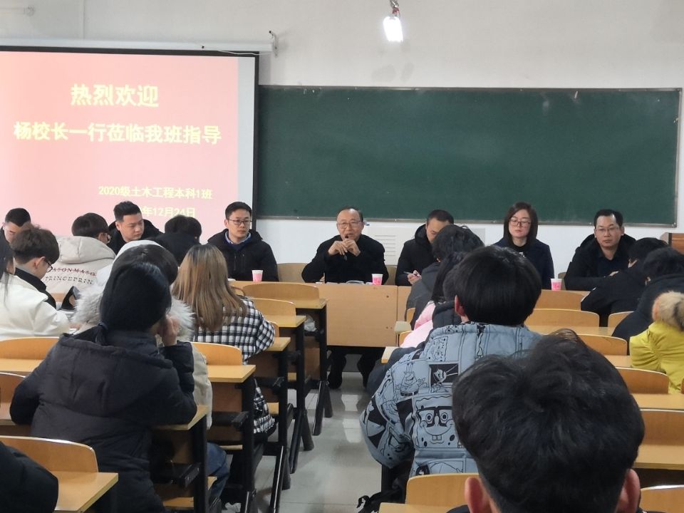 为积极落实信阳学院《关于加强和改进我校领导干部深入基层联系学生工作的通知》要求,12月24日上午,校长助理杨高伟,后勤处处长王力,数学与统计学院教学副院长张聪、外国语学院公共外语教研室主任陈彦慧,信息化建设与管理处朱威威深入土木工程学院2020级土木工程本科1班开展调研指导。土木工程学院教学副院长杨子泉,学工干事徐超,团总支书记吴琼茹参与了本次座谈会。座谈会由杨子泉主持。