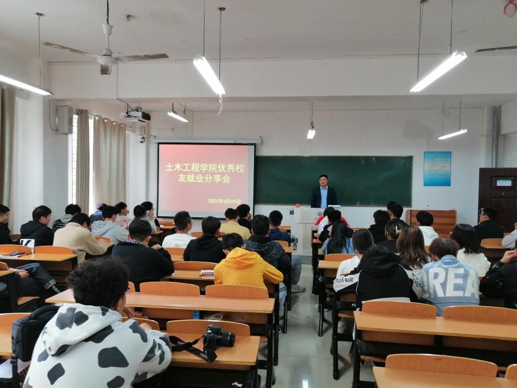 为使同学们了解最前沿的专业知识,就业少走弯路,做好准备,4月19日下午3点,土木工程学院邀请了2016届土木工程专业优秀毕业生陈星光在理工楼302开展了就业工作交流会,土木工程学院党总支书记郭二军,学工干事徐超,辅导员蔡大海、徐飞及70余名学生参加了本次交流会。会议由徐超主持。