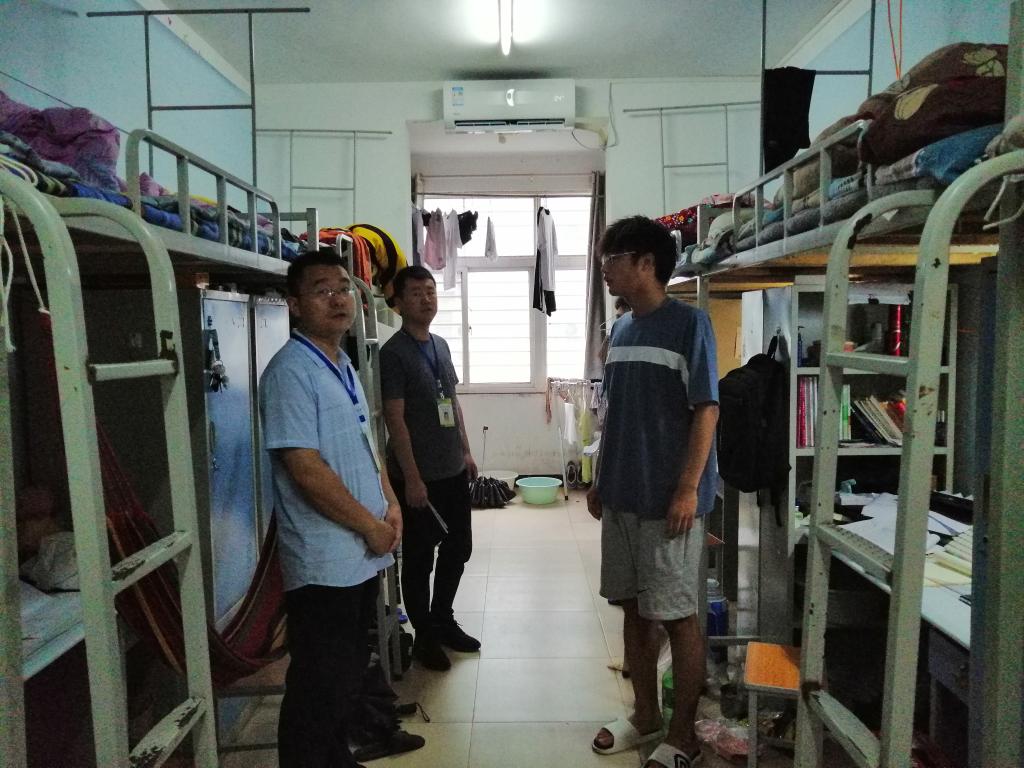 为进一步落实学校安全会议精神,提高学生的安全、文明、卫生意识,确保校园安全稳定。6月26日上午,土木工程学院学工干事徐超,团总支书记徐飞等积极深入学生宿舍,对学生的住宿情况及安全、文明、卫生等状况进行了大检查。