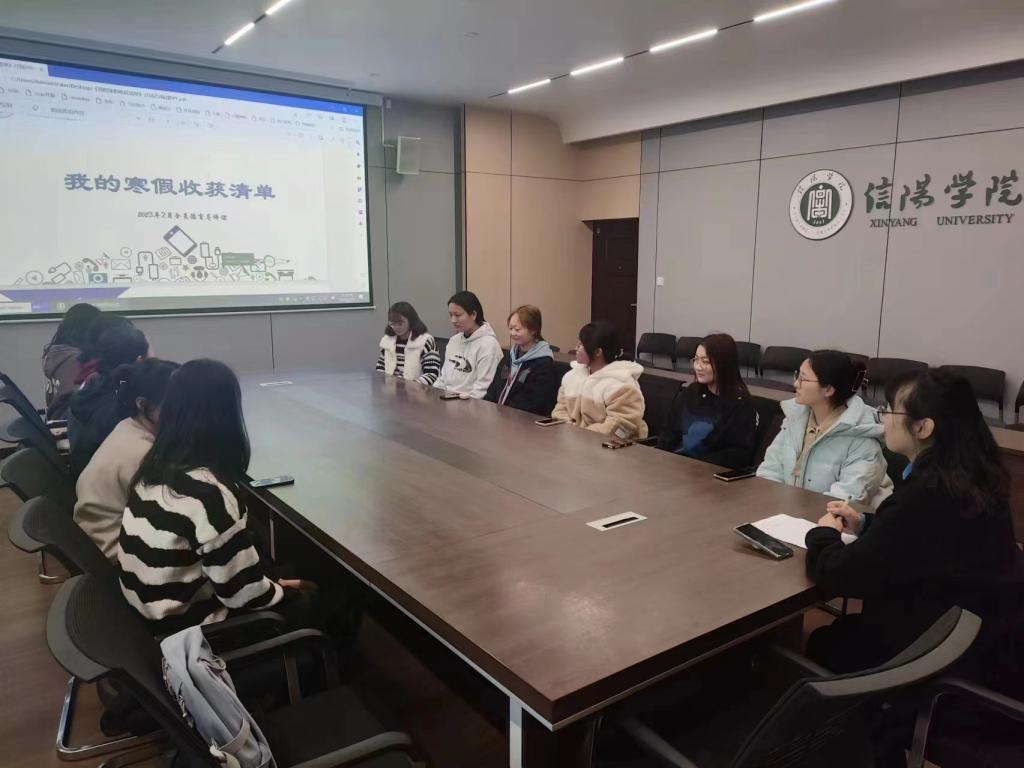 二月份,学生寒假返校,韩冰导师以“寒假归来话收获”开展导师课,请同学们分享寒假的所见所闻所感,打工经历,鼓励疫情后加强身体锻炼,强调大一时就制定好大学时期各阶段的目标,设置具体计划,按照适当的节奏逐步落实。