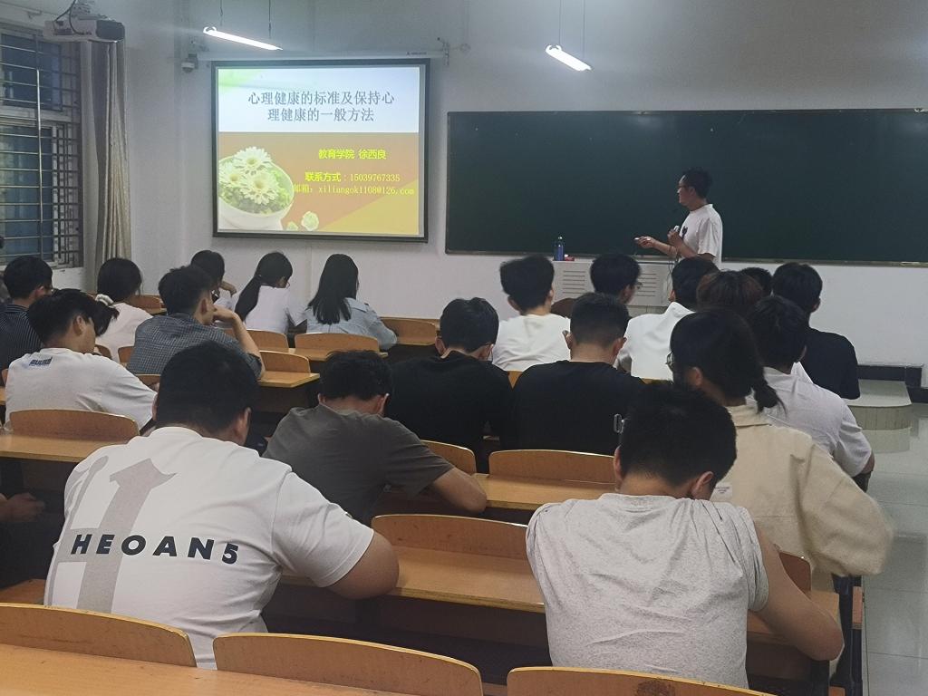 讲座的主题是“心理健康的标准及保持心理健康的一般方法”,徐老师首先给同学们讲解了心理健康的概念、内涵以及心理健康程度的划分,然后围绕心理健康的重要性、心理疾病、大学生关于心理疾病患者的看法和态度等方面进行了详细的诠释。讲座过程中徐老师还结合相关案例为大家讲述了心理疾病患者的症状与表现,并和同学们分享了如何判断心理正常与异常。