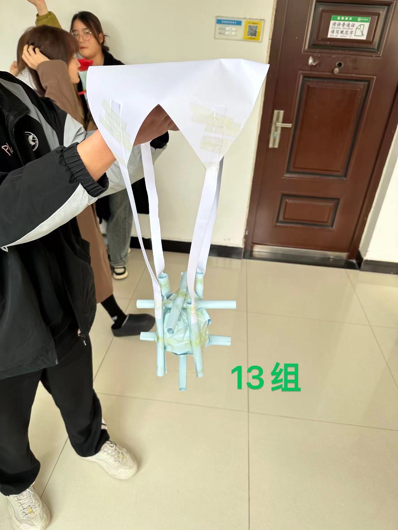 评委徐飞、王冬冬老师综合各组模型内鸡蛋的破损情况以及模型结构、重量、大小等方面情况,评出本次比赛的优胜者,并为获奖小组颁奖。