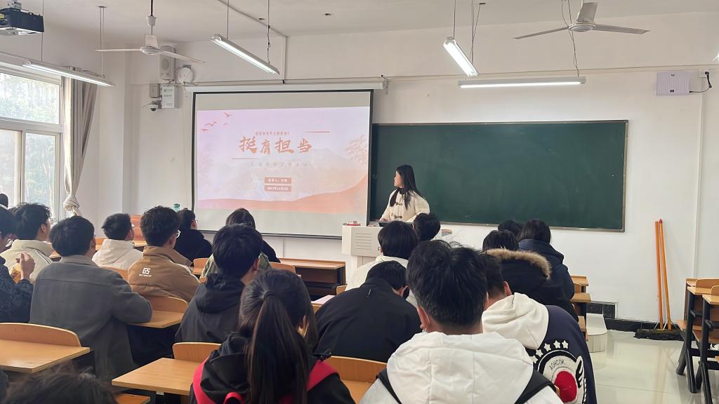 为深入学习贯彻习近平关于青年工作的重要论述。12月5日,土木工程学院团总支副书记付冰在理工楼301教室开展“挺膺担当”主题宣讲活动,学生会全体成员参加此次活动。