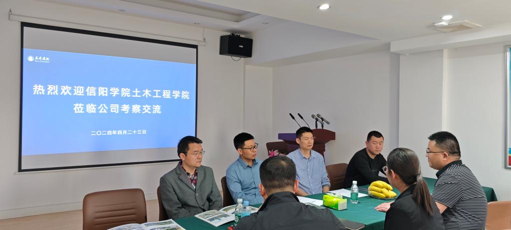 访企拓岗促就业,校企合作共发展,4月23日下午,土木工程学院党总支书记郭二军、学工干事徐超、教师代表赵航、毕业班辅导员徐飞及就业工作负责人余根一行赴信阳基本建设工程检测有限公司进行了实地走访,受到了信阳基本建设工程检测有限公司总经理汪向阳的热情接待。