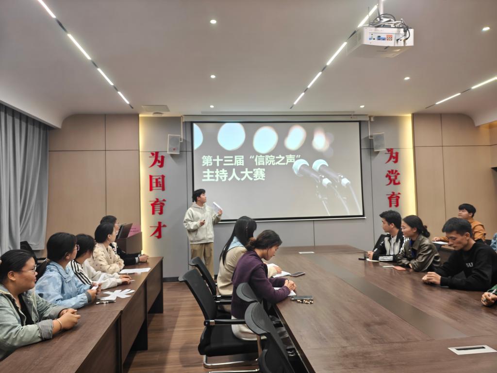 为培养和锻炼学生的语言表达能力,提升学生综合素质,并为热爱主持的同学们提供一个展现自我的“舞台”。10月29日,土木工程学院第十三届“信院之声”主持人初赛在理工楼112会议室成功举办,来自学院各班级的20名选手报名了此次大赛。辅导员陈曼怡、朱徐迪以及团总支学生会主席团全体成员共同担任了此次大赛的评委。