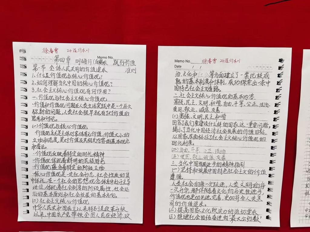 各位评委根据评选标准认真评比,重点考察课堂笔记的内容完整度、条理清晰度、笔记的创新性以及学习效果等,经过激烈的角逐以及评委现场打分,最终评选出24造价本01徐春雪等6名同学荣获一等奖,22土木本05赵诗阳等12名同学荣获二等奖,23土木本03安苗苗等25名同学荣获三等奖。