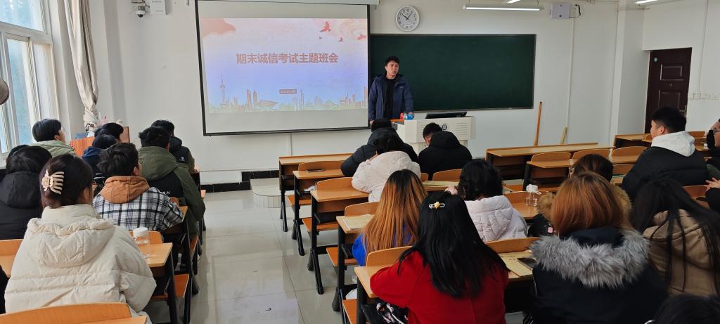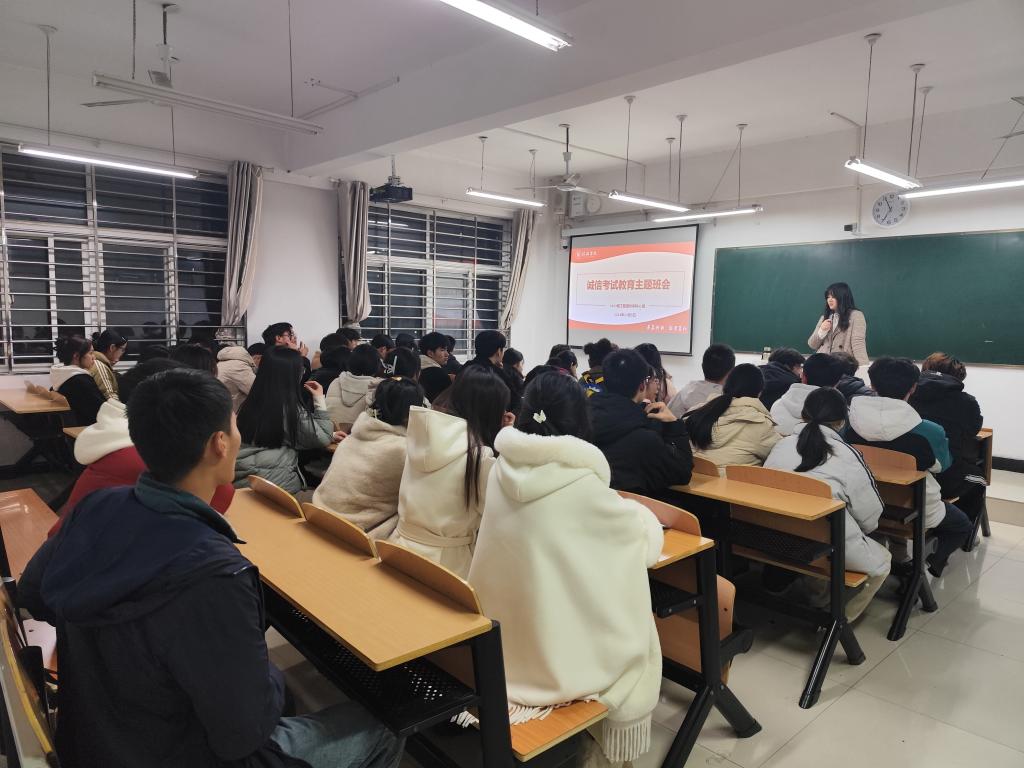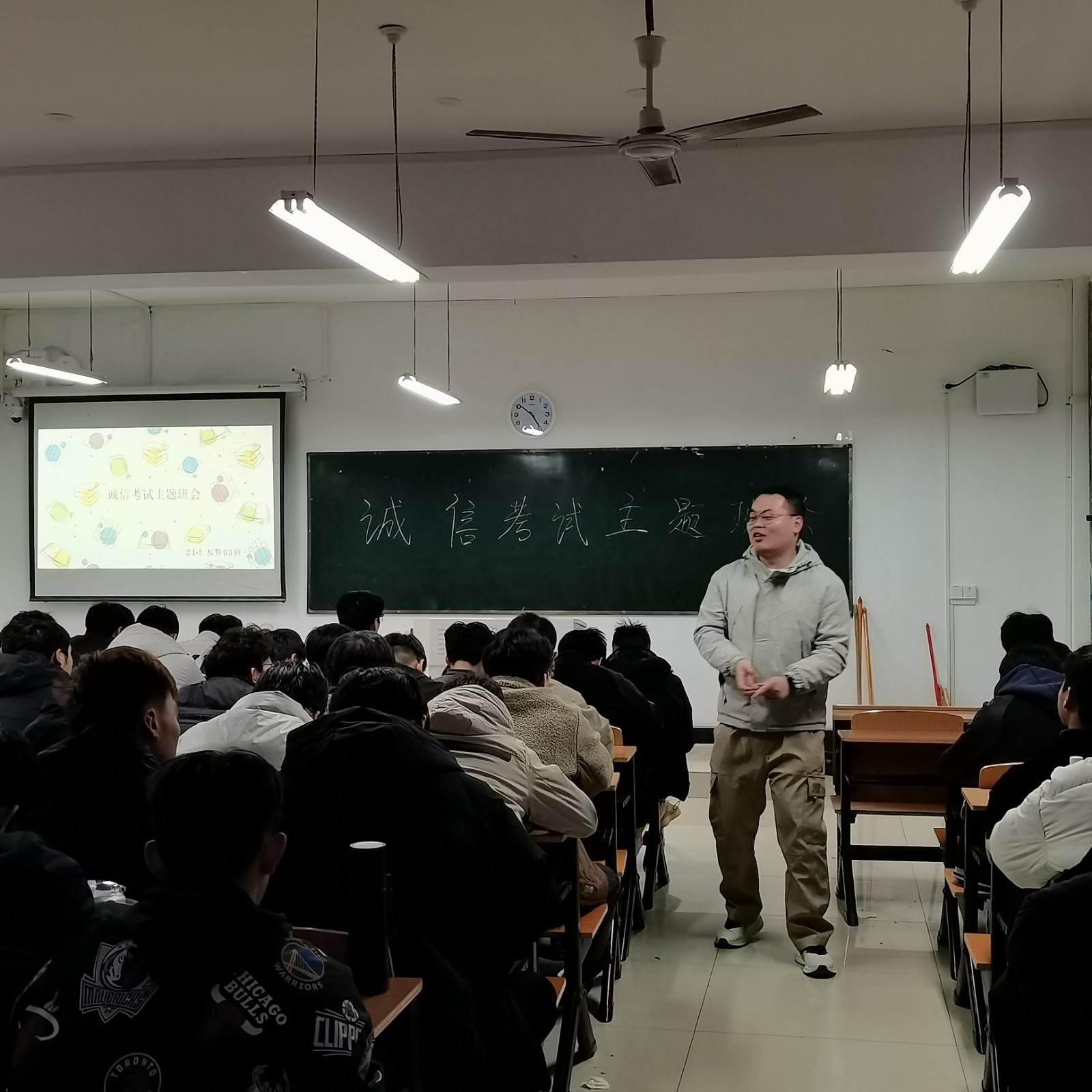 为进一步加强学风建设,倡导诚实守信的考试精神,土木工程学院于12月份开展了“期末诚信考试教育”主题活动。此次活动由各班辅导员老师主持,旨在通过多层次、多形式的教育引导,增强学生的诚信意识,营造风清气正的考试氛围,确保期末考试的顺利进行。