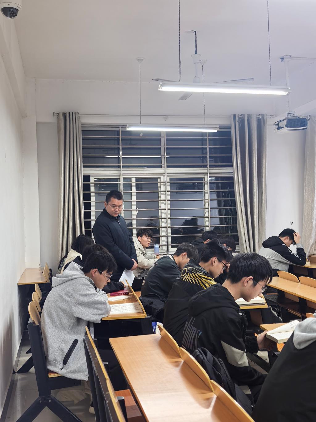 他们深入到各个教室,首先了解同学们的出勤情况,检查同学们晚自习的学习内容,询问大家在学习上有没有什么困难和问题,鼓励同学们要充分利用好晚自习时间,筑牢专业基础课,夯实英语、政治、高数等课程,为将来的进一步深造等打好基础。