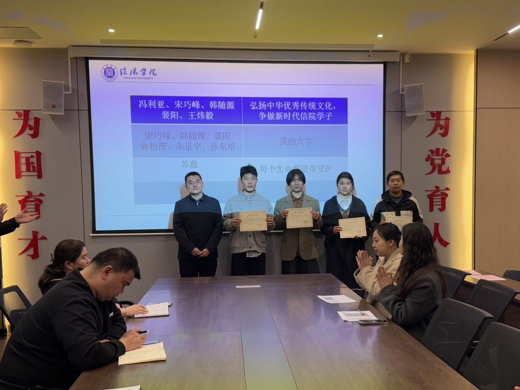 颁奖典礼上,学院领导依次为获奖者颁发荣誉证书。其中,冯利亚、王炜毅团队创作的微电影《弘扬中华优秀传统文化,争做新时代信院学子》荣获微电影作品大赛“一等奖”;宋巧峰、韩随源等同学的微视频《我的大学》等作品荣获“二等奖”;马冰阳、孙鑫磊等同学的《不忘初心,铭记历史》、《渺》作品荣获“优秀奖”。此外,宋勤勤、智书阁等5名同学在校园新媒体工作中表现突出,被授予“新媒体工作先进个人”称号。