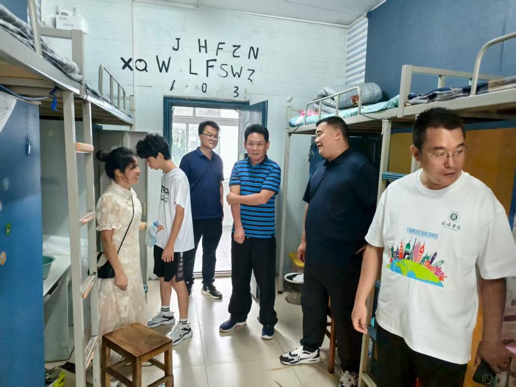 为进一步贯彻落实学校关于2025年秋季学期开学阶段学生安全教育与管理工作的要求部署,切实加强学生宿舍管理,营造良好住宿环境,9月7日,土木工程学院组织开展了2025级新生宿舍走访慰问活动。学院名誉院长鲍鹏、党总支书记徐远东、教学干事王亮、学工干事徐超带领新生辅导员深入新生宿舍,一同走访慰问2025级新生,为刚踏入大学校园的学子们送去温暖与关怀。