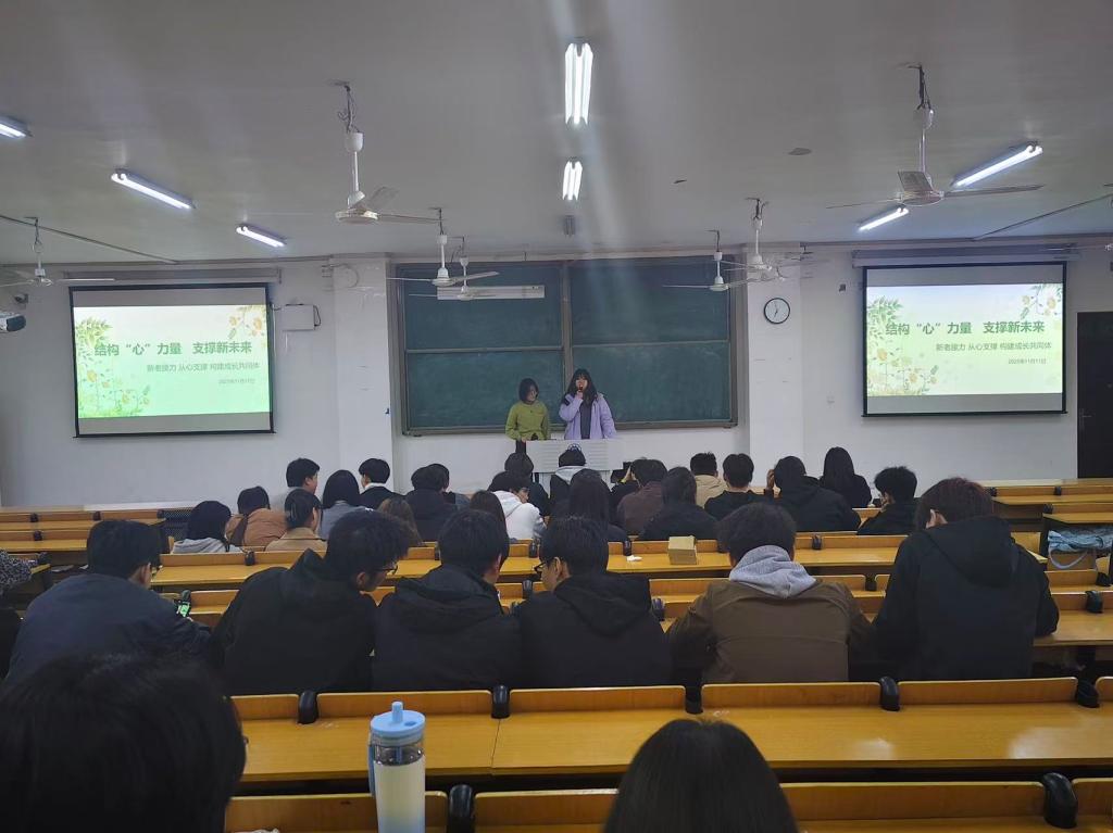 为全面提升学生干部的心理素养与团队协作能力,筑牢学生工作的“心理”基石,11月11日晚,土木工程学院辅导员秦怡博、陈曼怡组织23级、24级、25级土木工程专业、工程造价专业、智能建造专业和人居环境科学与技术专业的65名学生干部在人文楼106教室开展了一场以“结构‘心’力量,支撑新未来”为主题的新老学生干部心理团辅活动。本次活动巧妙融合趣味游戏与心理引导,为学生骨干队伍注入了新的活力。