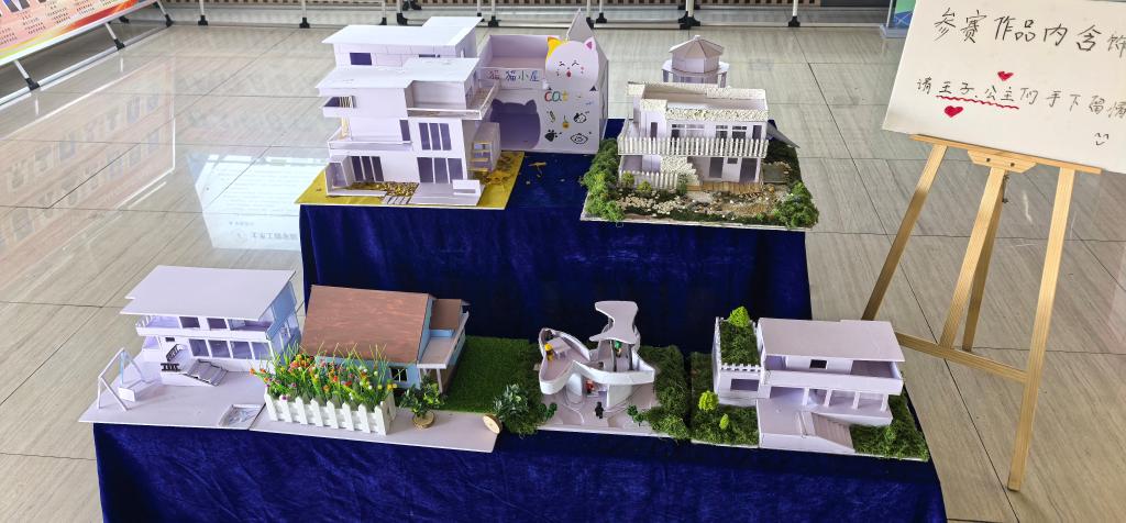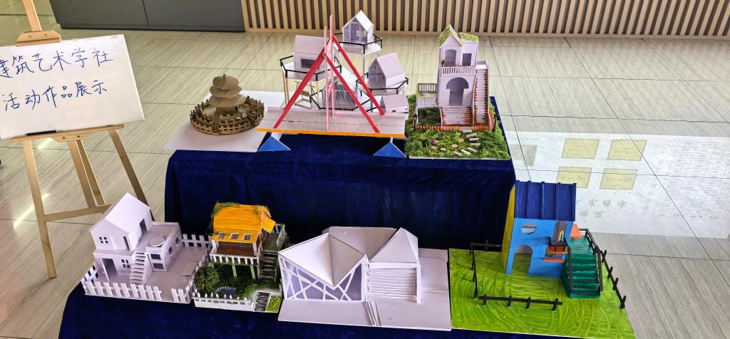 活动前期,建筑艺术学社通过线上、线下宣传,鼓励同学们积极报名参加。参赛选手可根据专业背景选择对应赛道,确保比赛公平性与专业性。参赛队伍通过模型展示、设计阐述、现场答辩三个环节,结合精巧的结构与创新的环保理念全面呈现作品的亮点。经过激烈角逐和综合评判,最终评选出一等奖2项、二等奖4项、三等奖6项及优秀奖若干等荣誉。作品展出当天,吸引到许多同学驻足观看。