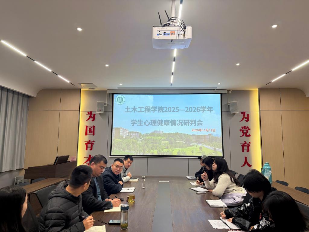 为深入贯彻落实立德树人根本任务,切实加强大学生心理健康教育工作,做到对学生心理问题的早发现、早干预、早处理,11月11日上午,土木工程学院在理工楼112会议室召开2025-2026学年学生心理健康情况研判会。学院党总支书记徐远东、学工干事徐超及学院全体辅导员参加了会议。大学生心理健康辅导中心宋川川老师和陈昱伶老师莅临指导工作,会议由徐超主持。