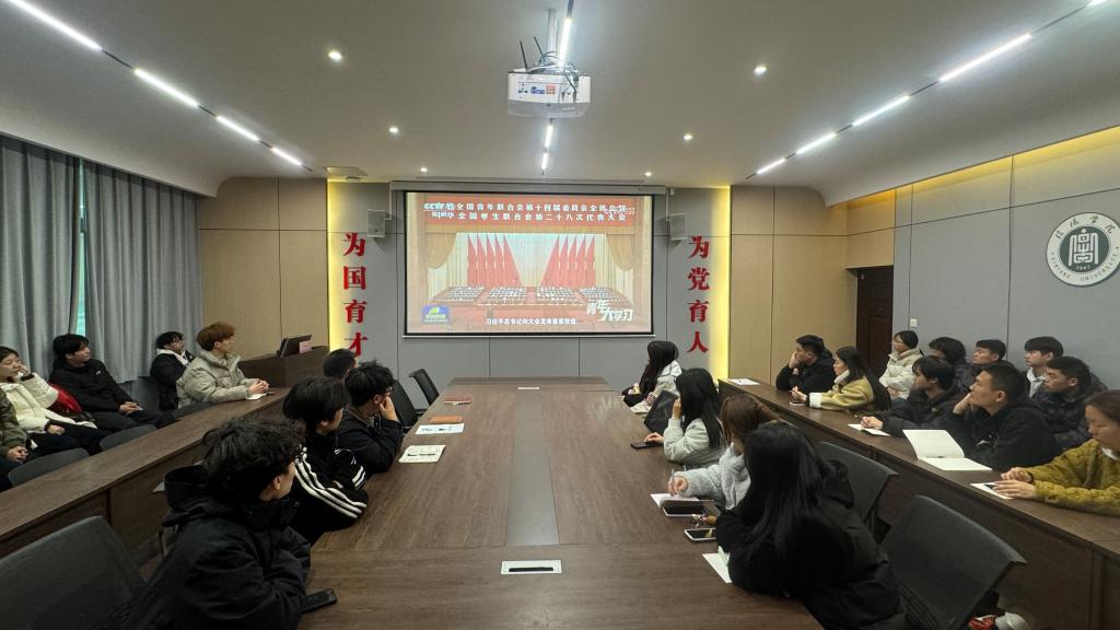 首先,与会成员共同观看学习了青年大学习系列团课《学习贯彻党的二十届四中全会精神特辑(二)》《全国青联十四届全委会和全国学联二十八大特辑(上)》。观看结束后,徐飞对学生干部提出殷切希望:面对新形势、新任务,全体学生干部务必要坚定理想信念,筑牢思想根基,做政治过硬、方向明确的引领者。
