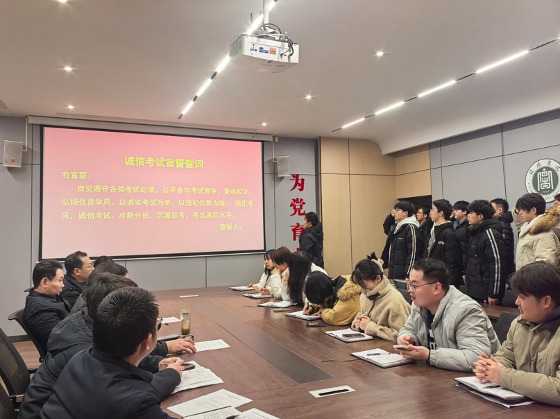 学工干事徐超对学风建设和诚信考试相关工作予以安排。他强调,各班班长要将本次会议精神及时传达给各班学生,严肃考风考纪。同时,提醒各班班长和学委在复习期间组织好班内学生复习,合理规划,争取考出好成绩。最后,徐老师强调,考生要坚决杜绝考试作弊,要诚信考试,养成良好的学风和考风,对于违规违纪学生绝不姑息,严肃处理。