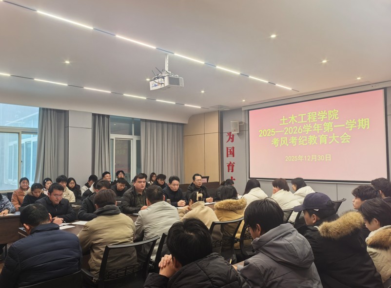 为进一步加强考风考纪教育,营造公平公正的考试环境,12月30日下午,土木工程学院在理工楼112会议室召开了2025-2026学年第一学期期末考风考纪教育大会。学院名誉院长鲍鹏、党总支书记徐远东、教学副院长杨子泉出席了会议,学院班子成员、全体辅导员、学生干部代表及各年级各班班长参加了会议。徐远东主持了会议。