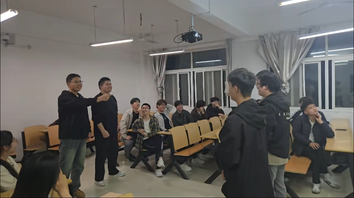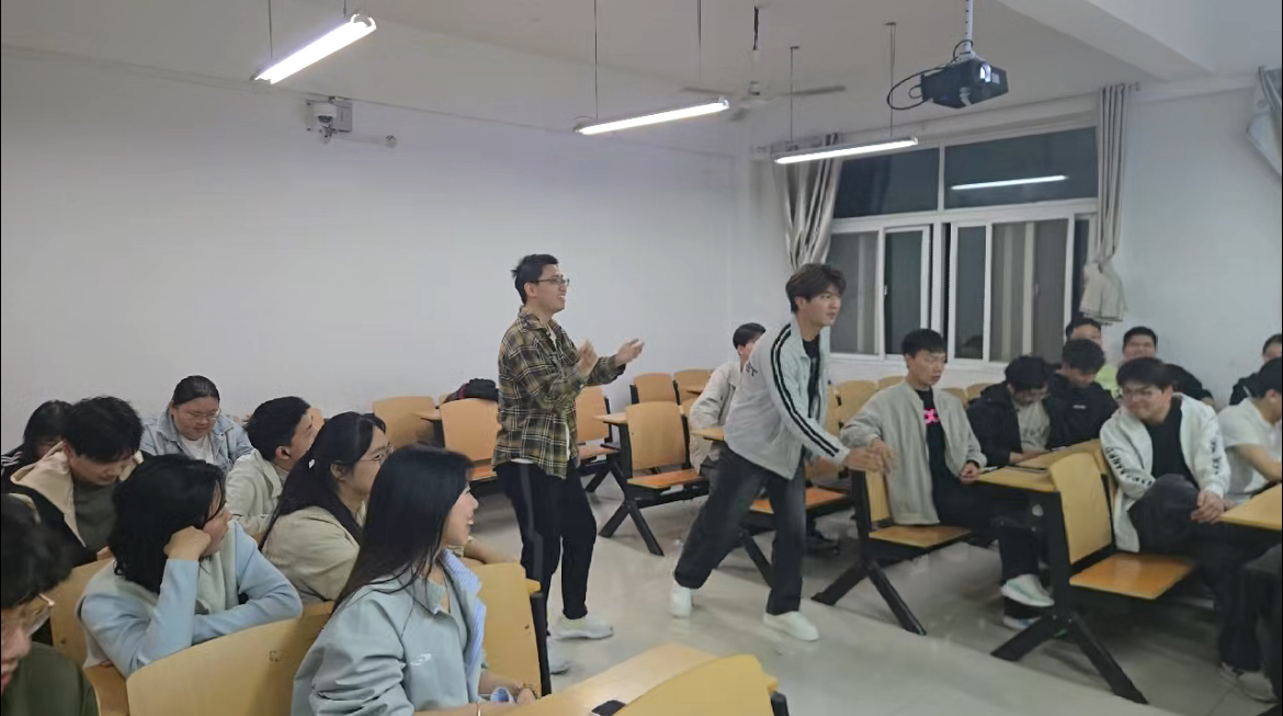 故事接龙环节更是将现场氛围推向高潮。台上十数名同学依次接续、灵感迸发,用生动的语言串联起跌宕起伏、妙趣横生的故事,脑洞大开的情节与默契十足的配合引得全场掌声不断。辅导员老师也积极参与其中,与同学们一同构思、接力讲述,在轻松互动中消除距离感,有效带动现场情绪,让大家在集体创作中感受协作的快乐与表达的勇气。