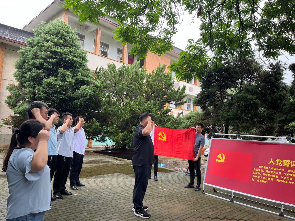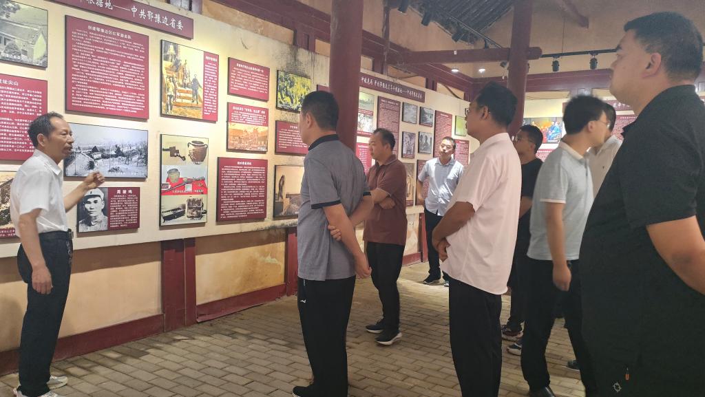 尖山革命纪念馆依托鄂豫边省委所在地的一座祠堂改建而成,展厅详细介绍了尖山地区的革命历史,鄂豫边省委的形成、发展过程及历史地位和作用。参观后,大家在党总支书记徐远东的带领下,重温入党誓词,进一步强化纪律意识和规矩意识,永葆共产党员的初心和使命。