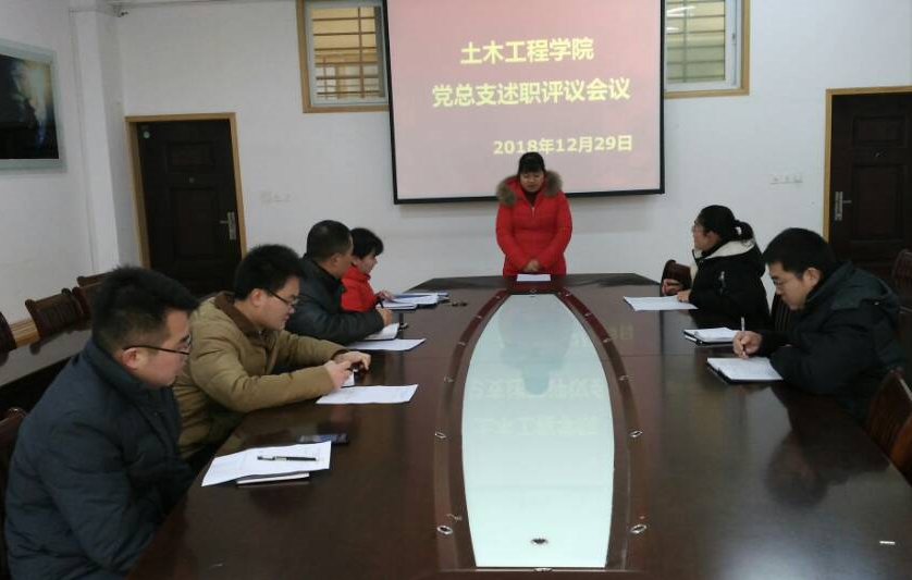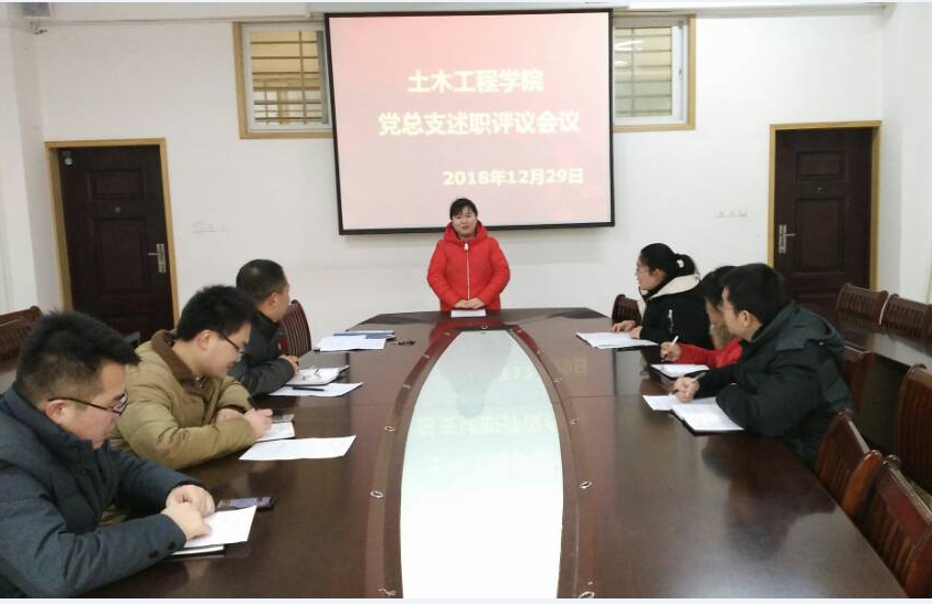 12月29日上午,土木工程学院党总支在理工楼201会议室召开述职评议专题会,院党总支书记潘卫国、总支委员徐超、王亮、方超及各支部书记参会。