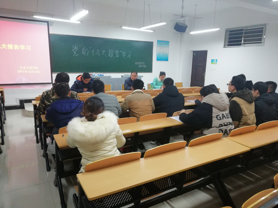 为加强学生入党积极分子和发展对象的党性意识,深化学习党的基本理论、基本路线和基本纲领,12月15日下午4:20,土木工程学院在理工楼406教室举行了“党的十九大报告专题”学习会。土木工程学院党总支书记潘卫国,党总支组织委员徐超,学生第一党支部书记吴琼茹,第二党支部书记唐辉,团支部书记潘兵远及第十八期发展对象和入党积极分子共同参与了学习会。学习会由唐辉主持。