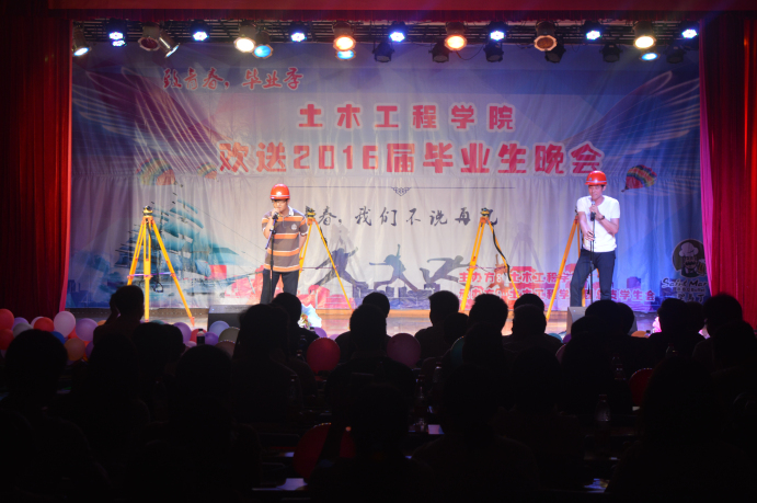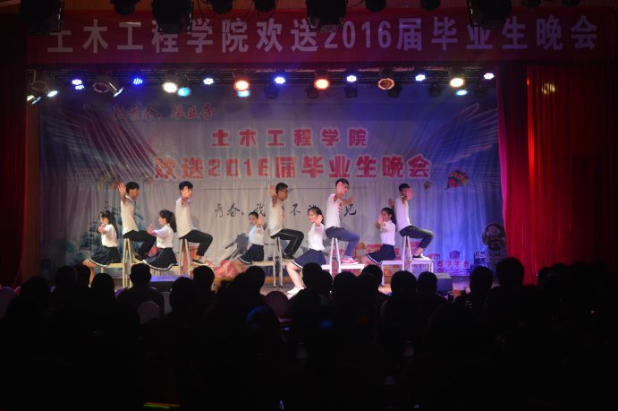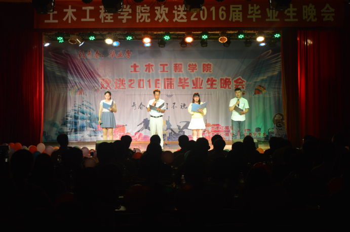近日,土木工程学院在大学生活动中心隆重举办“青春,我们不说再见”2016年欢送毕业生晚会。校长助理、党委委员杨高伟,有关方面负责人傅瑛、王钢城、魏明坤、李世胜、王金献、罗德喜、吴长才、张天定、张柏平、王力、张富庄和600余名师生共同观看了晚会。