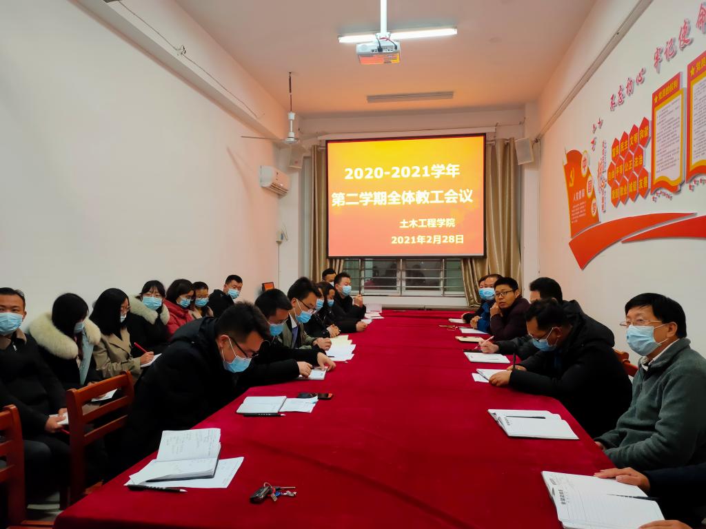 2月28日下午,土木工程学院2020-2021学年第二学期全体教工会议在理工楼112会议室召开。名誉院长、党总支书记、教学副院长及学院全体教工参加了会议。会议由郭二军书记主持。
