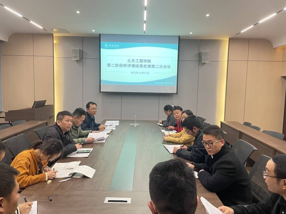 10月27日下午,土木工程学院在理工楼112会议室召开了土木工程学院第二阶段听评课结果反馈第二次会议。学院名誉院长、教学副院长杨子泉、学院听评课领导小组成员及第二阶段被听评课教师参加了会议。会议由杨子泉主持。
