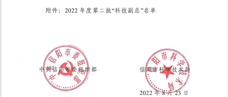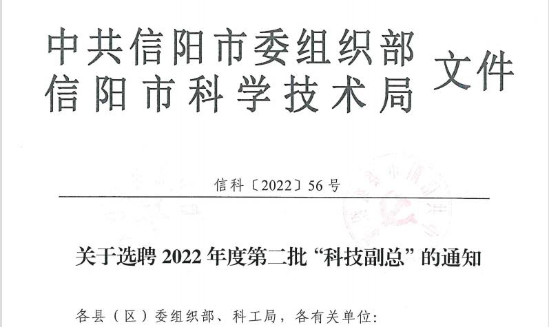 信阳市选聘“科技副总”行动计划由信阳市委组织部牵头,信阳市科技局负责具体实施,以企业为申报主体,聘请省内外高校院所专家教授到企业兼任技术副总,其任务是推动企业技术创新、强化企业创新管理、提升企业创新能力。