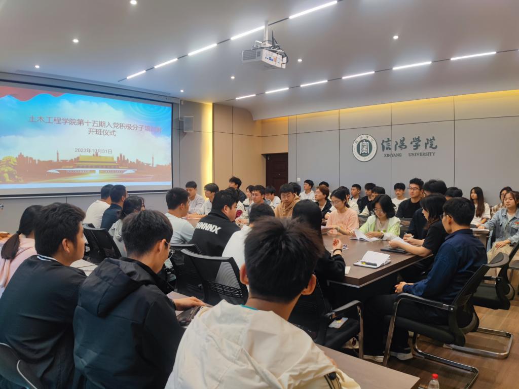 10月31日下午,土木工程学院党总支在理工楼112会议室举行第十五期入党积极分子培训班开班仪式暨总支书记专题党课。学院党总支书记郭二军、组织员曹贞贞及学院第十五期42名入党积极分子参加了会议。会议由曹贞贞主持。