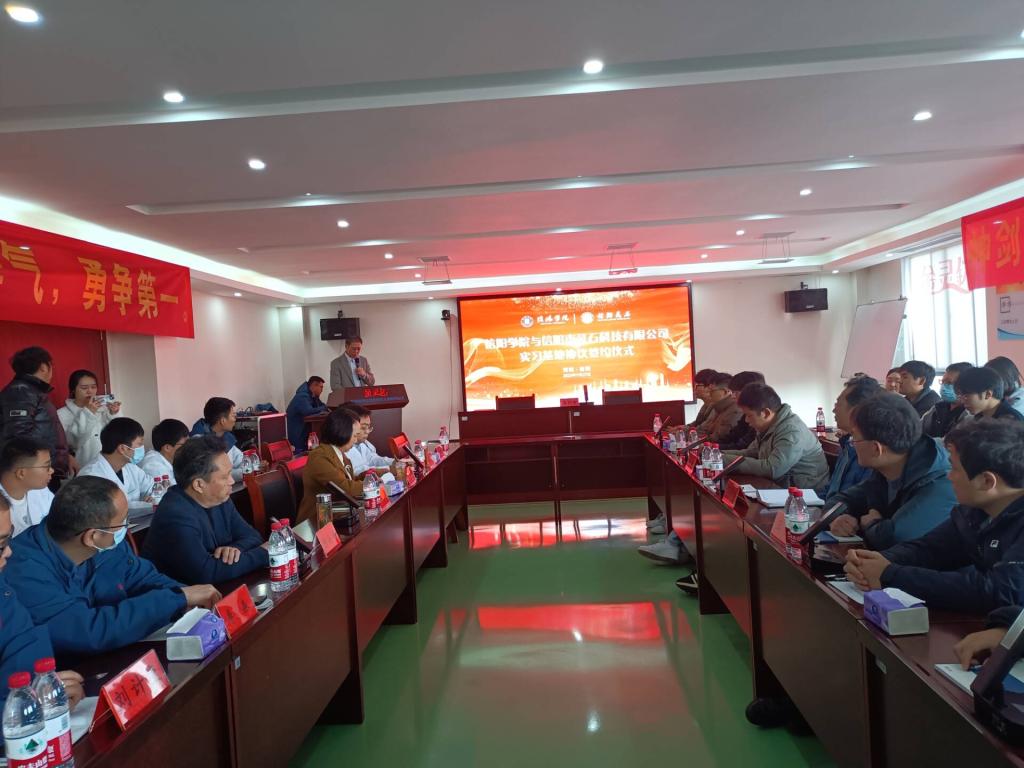 10月30日下午,信阳学院与信阳市灵石科技有限公司实习基地签约揭牌仪式在信阳市灵石科技有限公司举行。信阳市灵石科技有限公司董事长肖学党、总经理孟旭燕、科技副总闫东、产品经理刘计康,土木工程学院教学副院长杨子泉、教学干事王亮及有关老师参加了仪式。