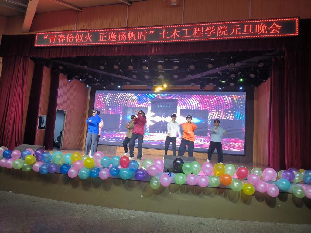 晚会在土木工程学院各班班长带来的热舞中拉开了帷幕。节目丰富多彩,精彩纷呈。歌曲《我的歌声里》《NUNA》悠扬动听;小品《魔高一尺道高一丈》形式新颖,节奏紧凑,让人捧腹大笑的同时也认识到了网络电信诈骗的隐蔽性,为防范电信诈骗再次敲响警钟;民族舞《小城谣》表达了舞者热爱生活的真挚情感,赢得阵阵热烈掌声;相声《元旦记事》诙谐幽默,字里行间透露出节日的喜庆气息;吉他弹唱《风吹麦浪》让人感受到丰收的喜悦;《T台秀表演》将整场晚会推向了最高潮,展现出自信的青春气息,赢得现场观众阵阵欢呼。街舞《Instruction》再次燃爆全场;《新少年游》朗诵者声情并茂,展现出少年奋发向上的精神面貌及青春不负少年时的期望。最后,晚会在全体演出人员的大合唱《明天会更好》的美好希冀中圆满落下帷幕。