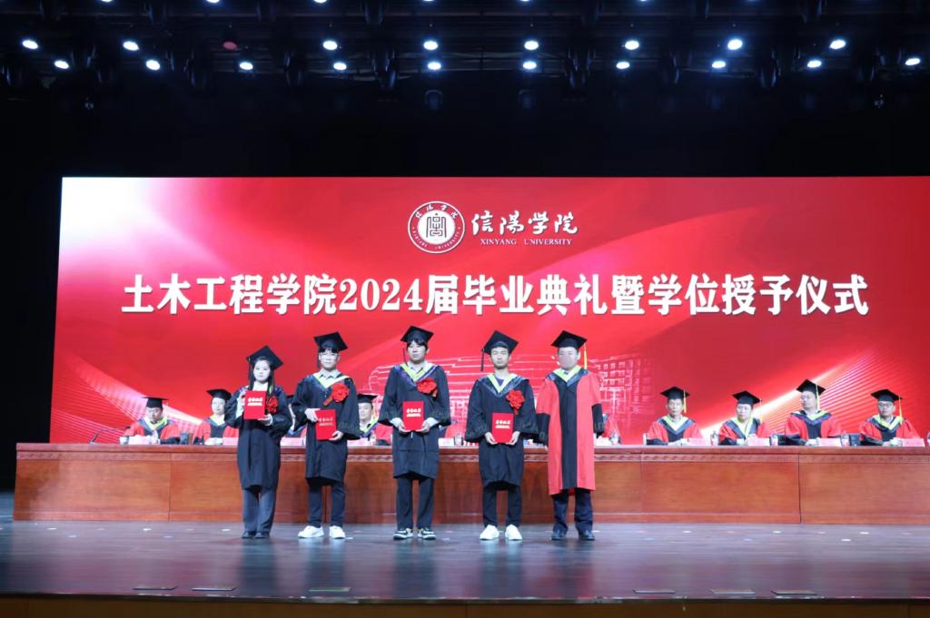 毕业典礼在庄严而雄壮的国歌声中拉开帷幕。教学副院长杨子泉宣读了《信阳学院土木工程学院关于授予2024届毕业生学士学位的决定》。行政秘书郗利选宣读了《关于表彰2024届优秀毕业生的决定》。学工干事徐超宣读了《信阳学院土木工程学院关于聘任2024届校友联络员的决定》。