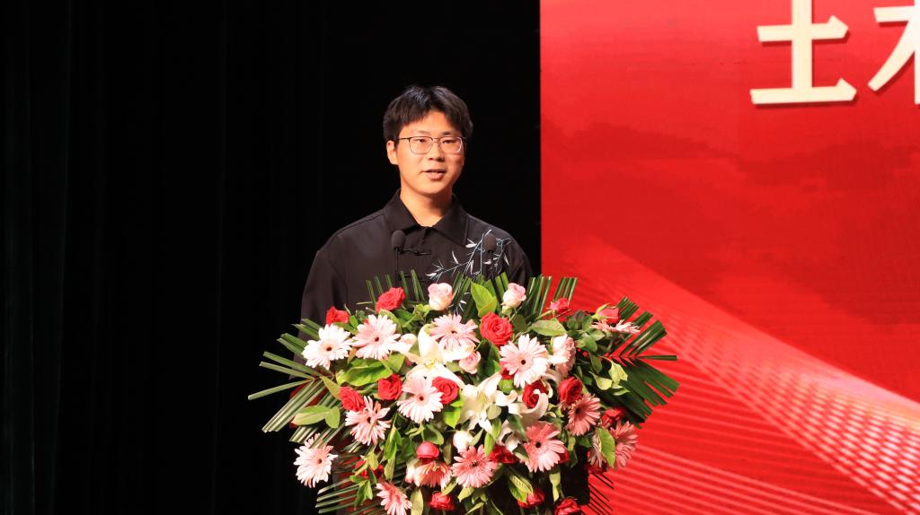在校生代表、校简历大赛一等奖获得者鹿金洲同学发言,他对即将离开母校的学长学姐们表达了衷心的祝福,感谢他们给予的帮助和指导,表示将以他们为榜样,用自己的实际行动践行青春无悔的诺言。