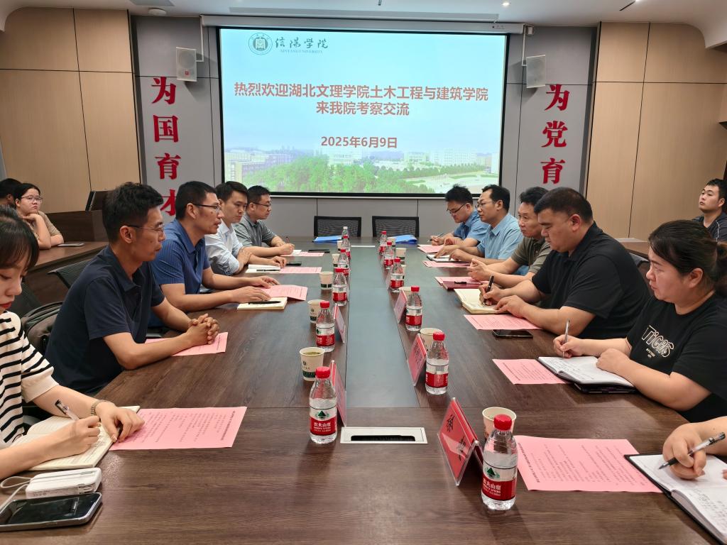 为进一步优化共享和充分利用校际之间在人才培养、学术交流等方面的优势资源,实现合作共赢。6月9日,湖北文理学院土木工程与建筑学院院长李业学一行来我院访问洽谈合作事宜,双方在理工楼112会议室召开交流座谈会,湖北文理学院土木工程与建筑学院院长李业学教授、土木工程系主任范建辉、教学委员会副主任尹晓萌、研工办主任周衡、学工办主任刘雨荷,土木工程学院名誉院长鲍鹏、党总支书记徐远东、教学副院长杨子泉、班子成员及部分师生代表参加了会议。徐远东主持了会议。