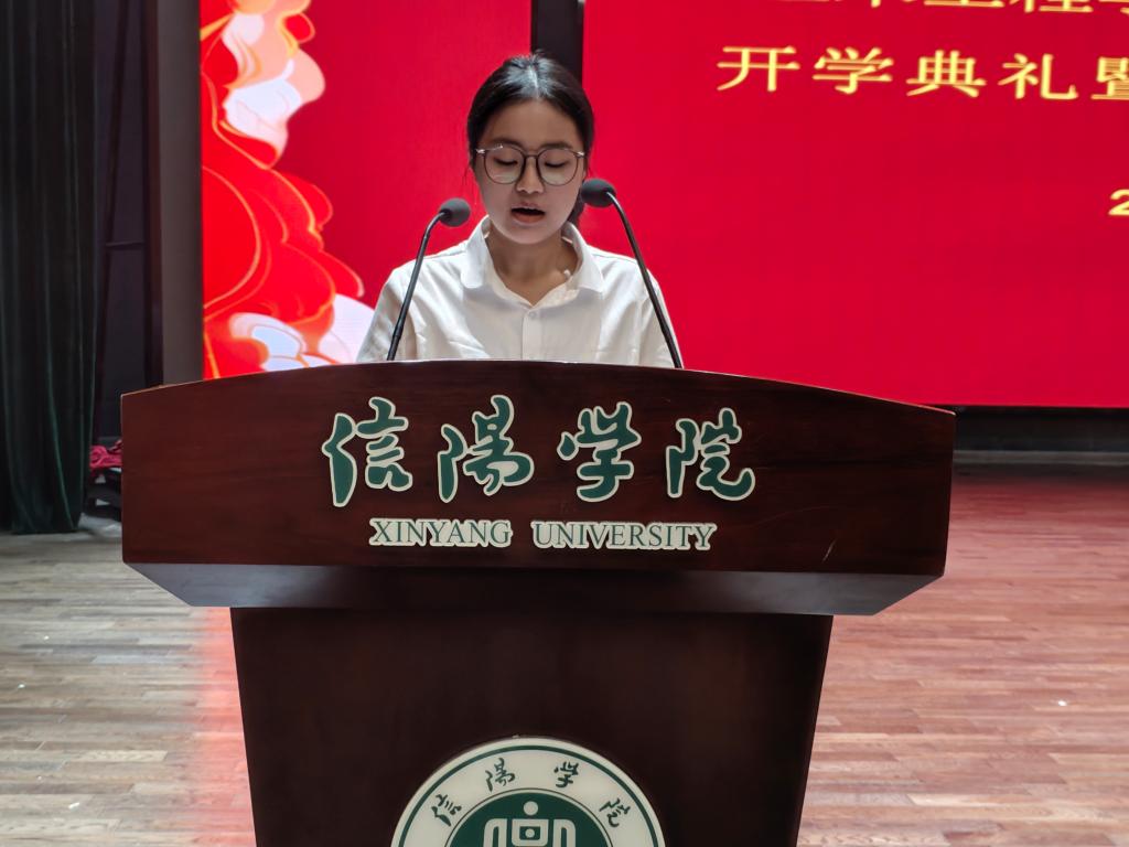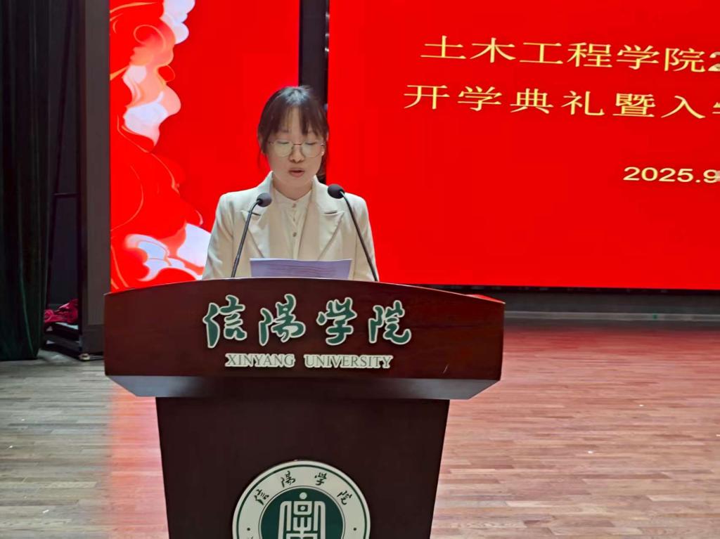 新生代表、25智建本01班马静怡同学在发言中表示,自己非常荣幸加入信阳学院土木工程学院这个大家庭,将不忘初心,努力学习,不辜负美好的大学时光。