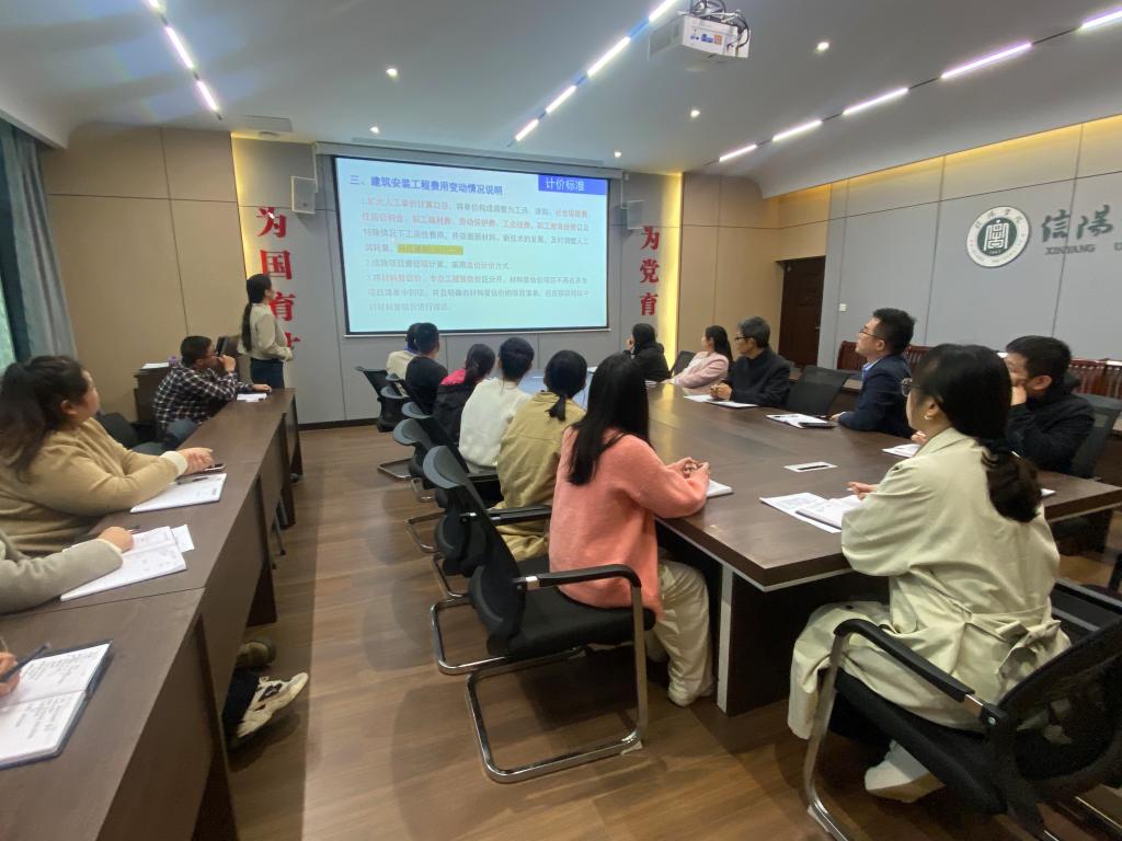 为紧跟行业政策动态,提升教师的专业素养与教学水平,近日,土木工程学院工程造价教研室组织开展了《建设工程工程量清单计价标准》GB/T50500-2024、《房屋建筑与装饰工程工程量计算标准》GB/T50500-2024(以下统称“24新标准”)专题学习活动。本次活动由方超老师主持、张越老师主讲,工程造价教研室全体教师、人居环境科学与技术专业部分教师参加。