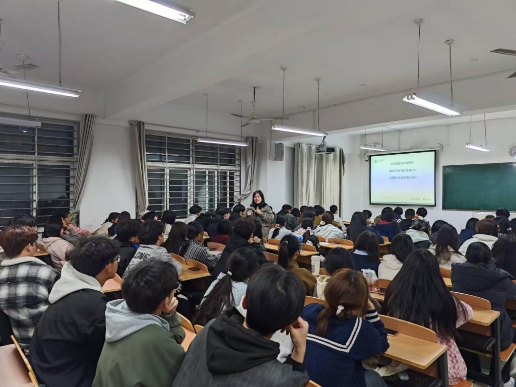 在互动交流环节,大家就“如何平衡专业课学习与考研复习”、“跨专业考研的利与弊”等具体问题与苏老师进行了深入交流。苏老师耐心倾听,逐一给予了细致、中肯的解答,她真诚恳切的态度和风趣幽默的语言,赢得了同学们的阵阵掌声。