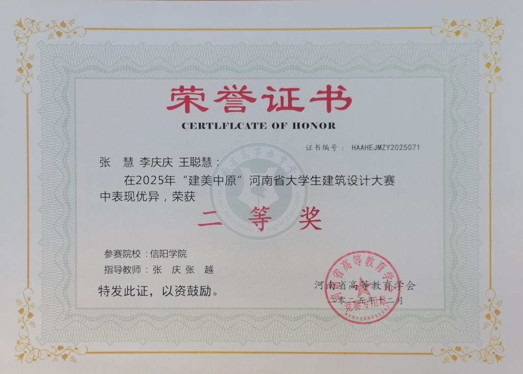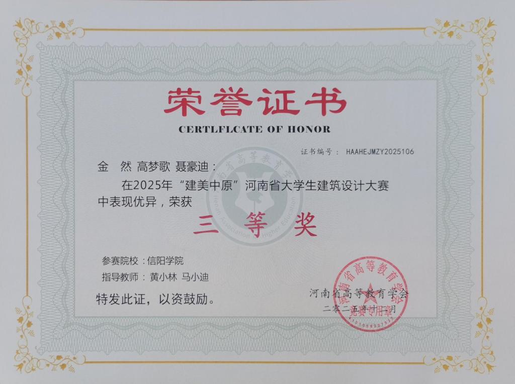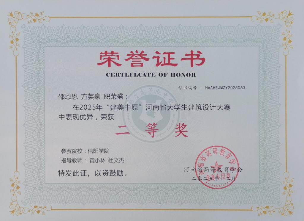 近日,由河南省高等教育学会主办的“设计河南”系列大学生学科竞赛之2025年“建美中原”河南省大学生建筑设计大赛圆满落幕。我校土木工程学院选派8支代表队参赛,共斩获团队奖8项(本次大赛只设团体奖)。其中,装配式深化设计赛项获二等奖2项、三等奖1项,BIM+项目综合应用管理赛项获二等奖2项、三等奖2项,数字化结构设计赛项获三等奖1项。